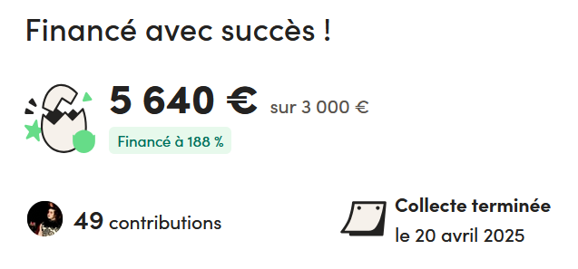 La magie opère (et je ne l’explique toujours pas) : on dépasse les 100% de l’objectif en un mois, et on fini à 188%, soit 5640€ !!