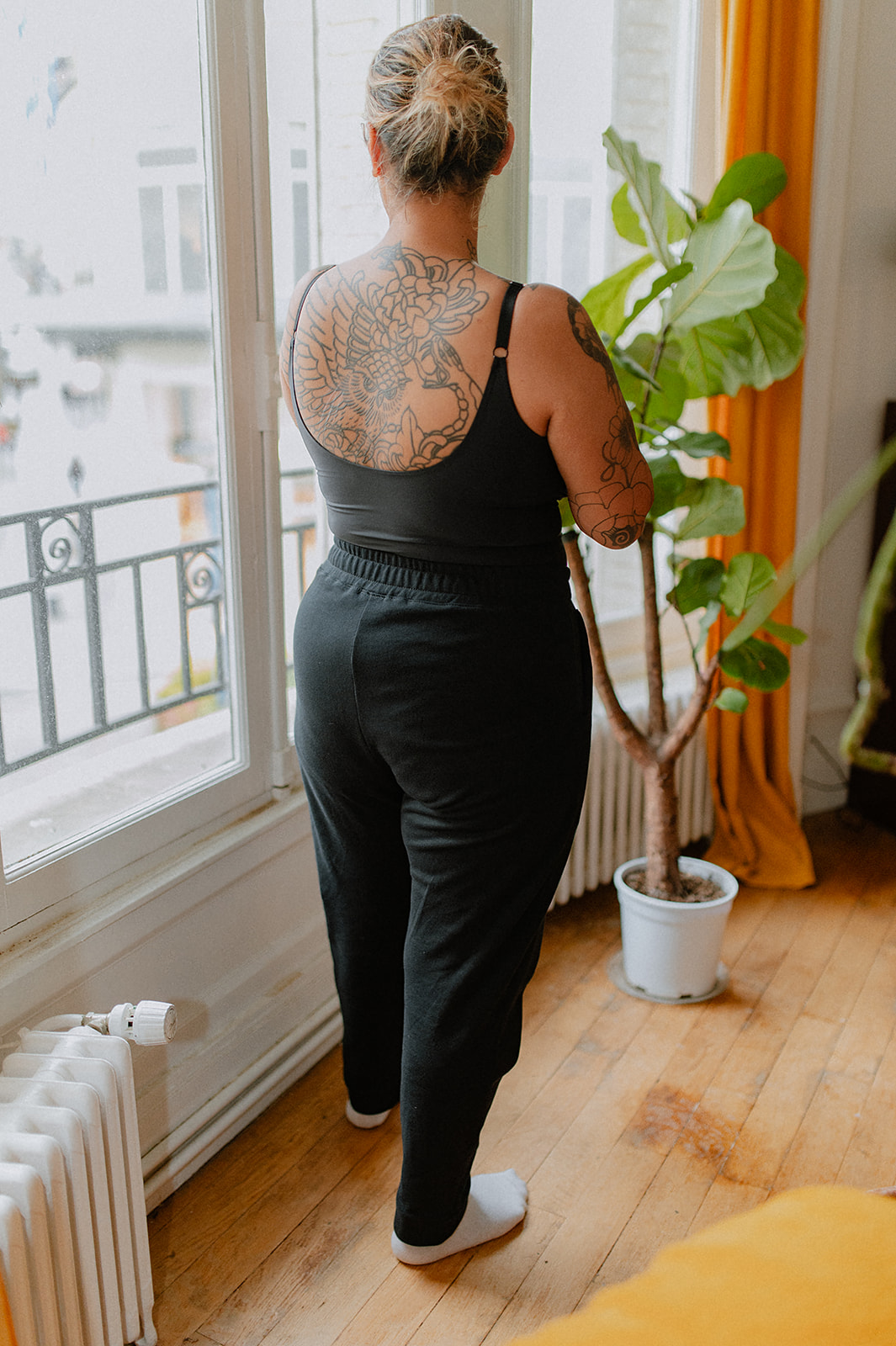 Ce jogging est fabriqué dans un molleton de coton noir à la fois chaud et léger : idéal à porter toute l’année !