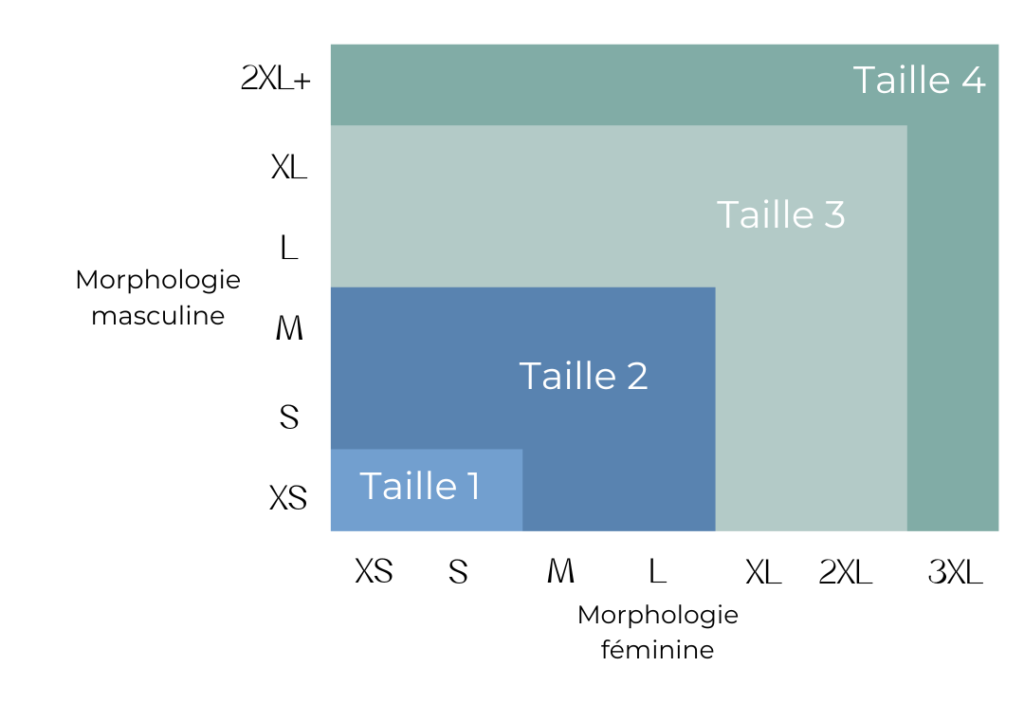 Pour le guide des tailles, j’ai créé un tableau à double entrée, pour que tu trouves la surchemise adaptée à ta morphologie.